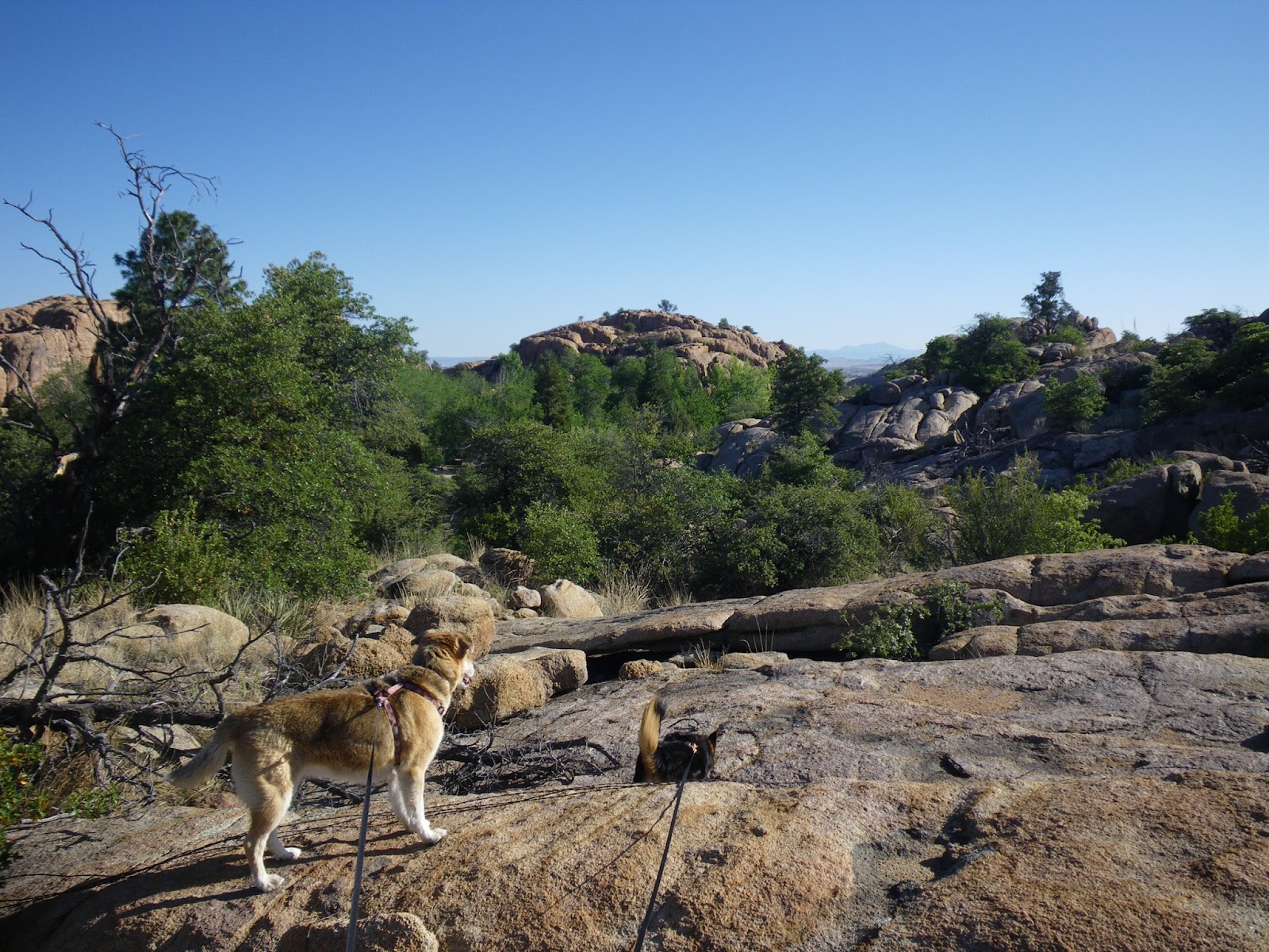 | The rocks behind our site. The dogs got up extra early and with extra enthusiasm because they wanted to climb rocks. |